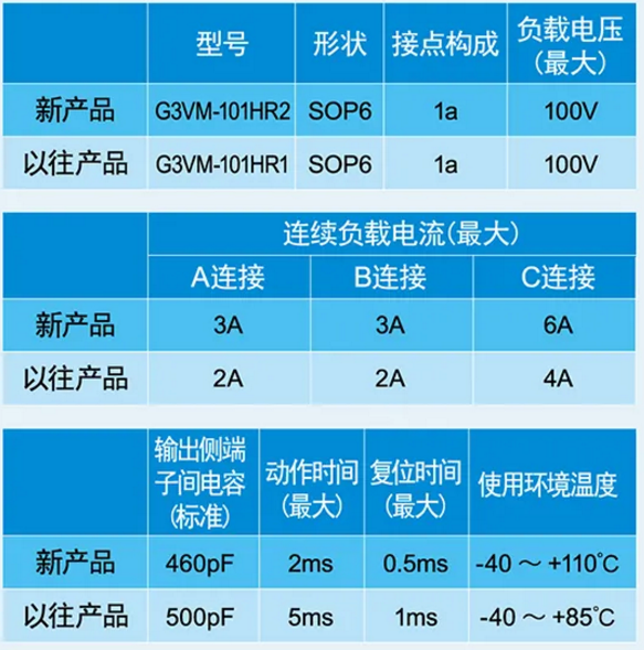 廣州鼎悅電子科技是歐姆龍授權代理商,現由我們給大家介紹歐姆龍高容量型MOS FET繼電器,歐姆龍在SOP6系列中推出的高容量型MOS FET繼電器G3VM-101HR2,幫您提高設計空間!速度是以往產品的2倍,在高溫下也可安心使用。而且可廣泛應用于BA設備/空調控制、FA設備/設備I/O控制、ATE/計測儀器等具有輸出用途的場景。