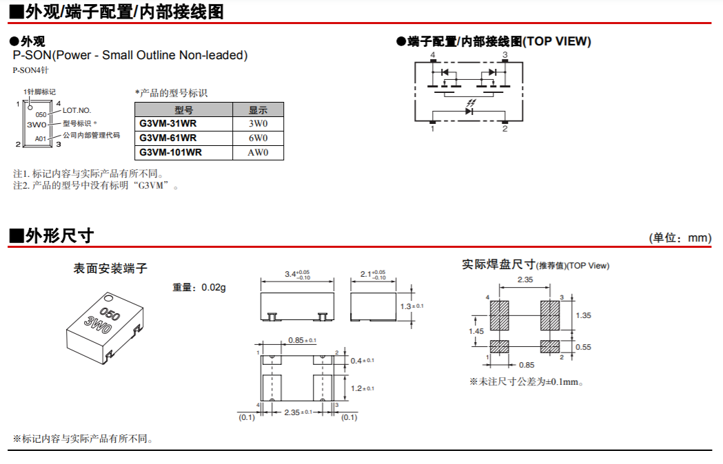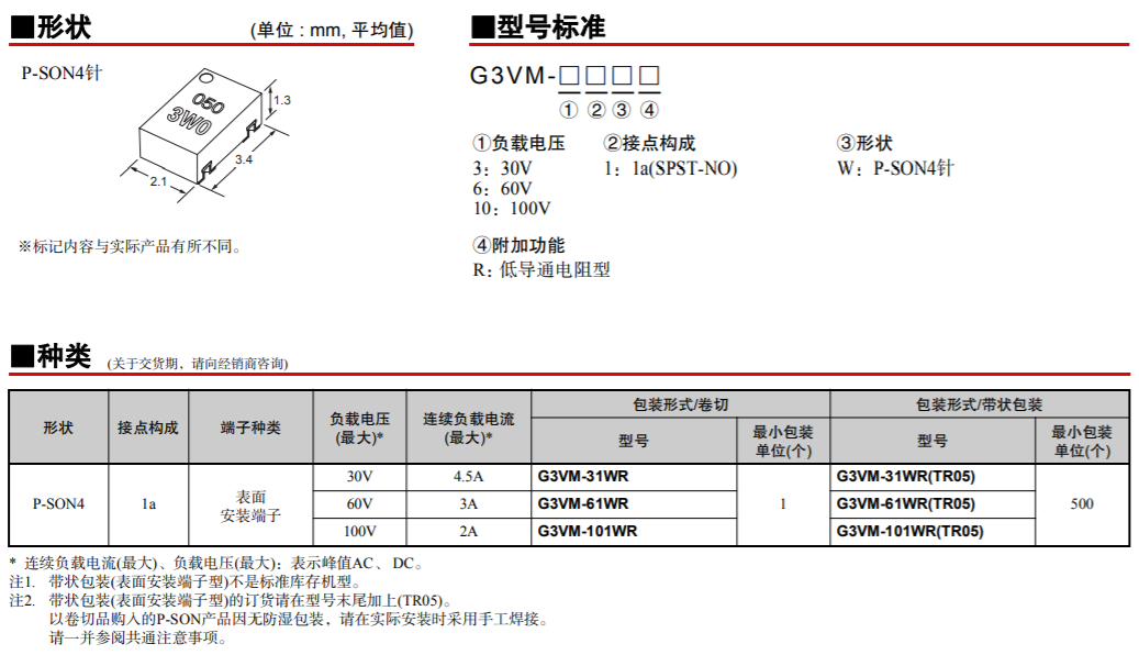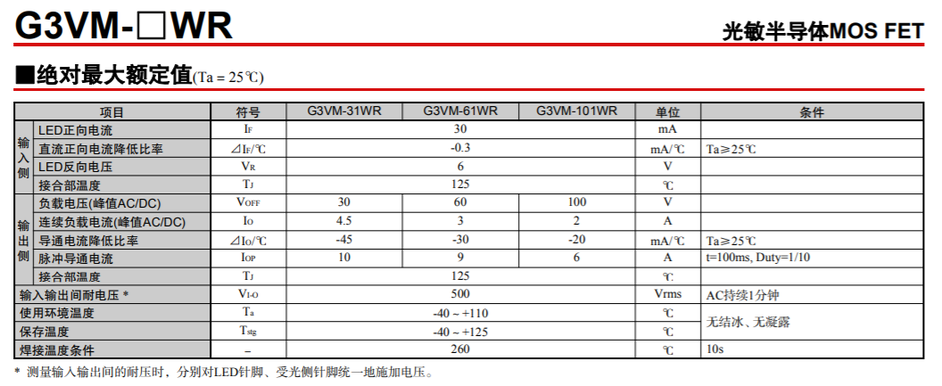 G3VM-31/61/101WR 光敏半導(dǎo)體MOS FET
