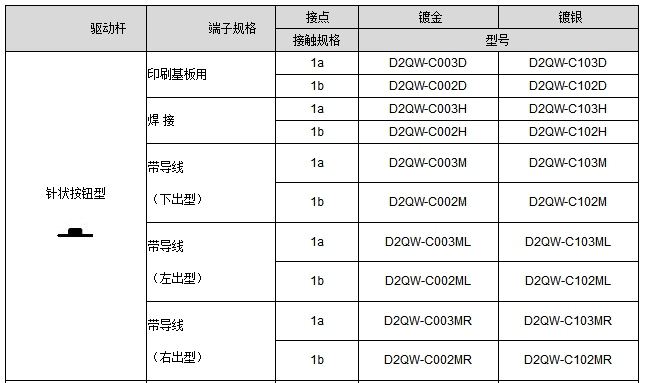D2QW系列密封型極小型基本開(kāi)關(guān)