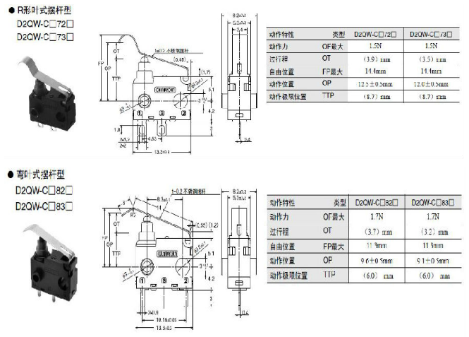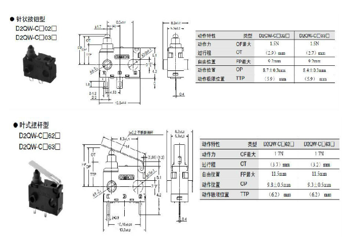 D2QW系列 密封型極小型基本開(kāi)關(guān) 高可靠性和耐環(huán)境性兼?zhèn)涞拈L(zhǎng)行程密封型開(kāi)關(guān)