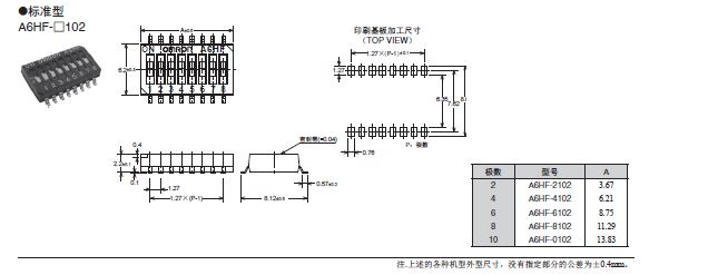 A6HF-□102(-P)滑動型DIP開關(guān)